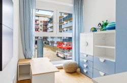 Im Erdgeschoss laden weitläufige Grünflächen sowie attraktiv gestaltete „Wohnstraßen“ mit Sitzmöglichkeiten zum Verweilen und Entspannen ein. Ergänzend dazu entsteht im östlichen Teil des Areals eine öffentlich zugängliche Parkanlage.