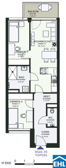 Fliesen, Parkett, Fußbodenheizung, Wohnküche / offene Küche, Personenaufzug, Dusche