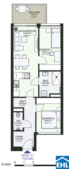 Parkett, Fliesen, Fußbodenheizung, Wohnküche / offene Küche, Personenaufzug, Dusche