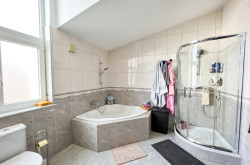 - ein geräumiges Badezimmer mit Dusche und Badewanne und WC