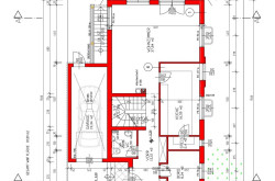 - ein knapp 38 m2 großes Wohnzimmer mit Ausgang zur zirka 22 m2 großen Terrasse und zum Garten