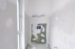 - ein geräumiges Badezimmer mit Vorbereitungen für Dusche und Badewanne und WC