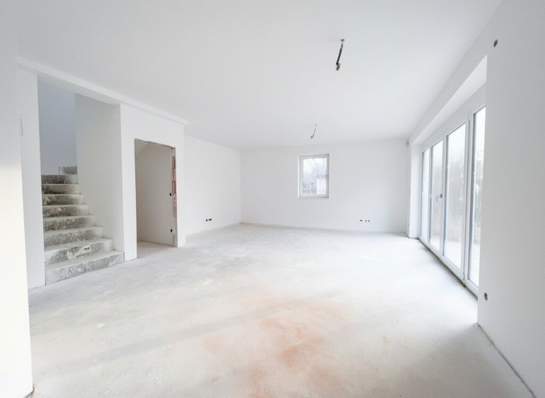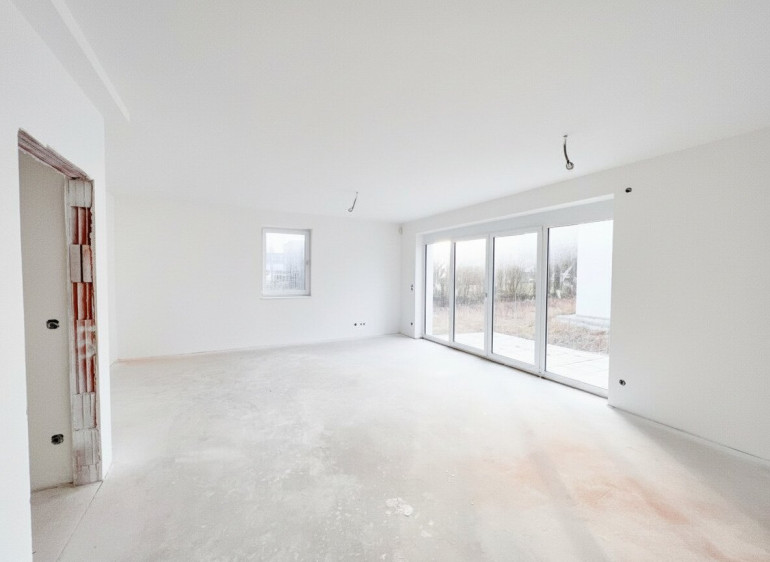 - eine 38,38 m2 große Wohnküche mit Ausgang zur 18 m2 Terrasse und zum Garten