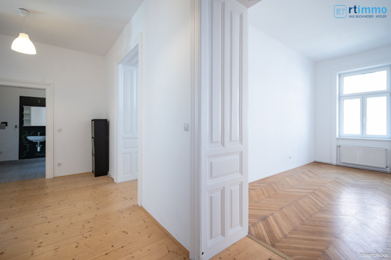 Die Top 9 ist eine der Eckwohnungen im Haus und befindet sich im 2. Obergeschoss (derzeit ohne Lift) und befindet sich in großteils sanaietrem Zustand (das Bad und WC brauchen noch etwas Zuwendung. Diese Wohnung im Herzen des 18ten Bezirks besteht aus einem großzügigen Entreemiteinem hellen Schiffboden, einer schönen Küche mit einer weißen modernen Einbauküche, einem Wohnzimmer und dem großen Eckzimmer,. Dazu gehört auch ein Badezimmer mit Badewanne, Waschmaschinenanschluss sowie Handwaschbecken, dieses braucht allerdings noch ein wenig Aufmerksamkeit um es modern einzurichten..