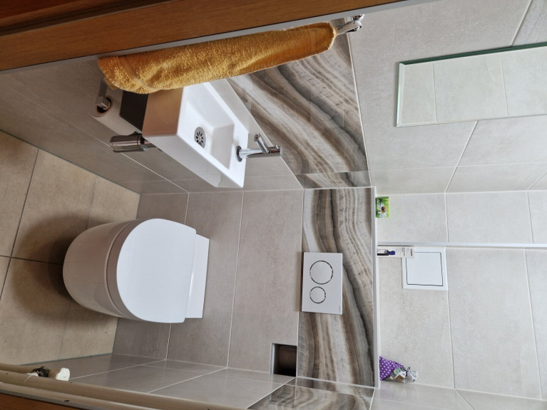 Sie betreten die Wohnung durch ein zentrales Vorzimmer. Gegenüber vom Eingang befindet sich die geräumige Wohnküche, die mit einer Tischlerküche verbaut und mit allen nötigen Geräten ausgestattet ist. Rechts finden Sie das neu renovierte Bad mit bodentiefer Dusche. Wenn Sie weitergehen, gelangen Sie in das Schlafzimmer und daneben in das geräumige Wohnzimmer. Auch die separate Toilette, die vom Vorzimmer aus zu begehen ist, wurde neu renoviert.