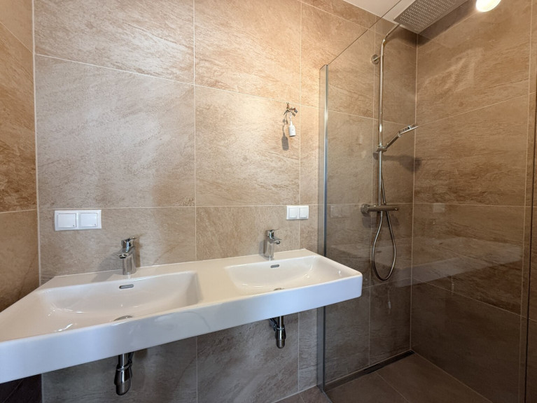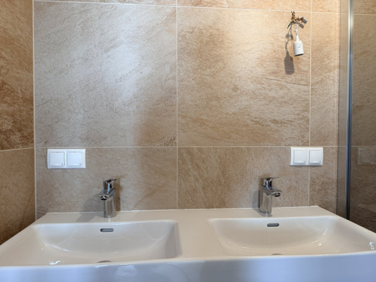 - Hochwertige Fliesen: Vorraum, Bad bis zur Decke, WC bis 1,20 m, Loggia 60×60 cm R10