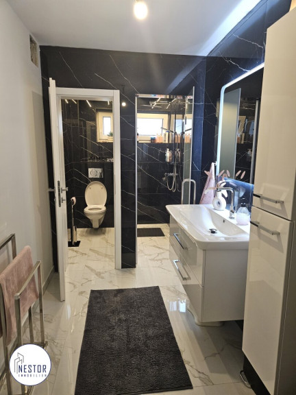 Steinboden, Parkett, Fliesen, Elektro, Solarenergie, Zentralheizung, Einbauküche, Westbalkon, Bad mit Fenster, Badewanne, Dusche, Garage, Parkplatz