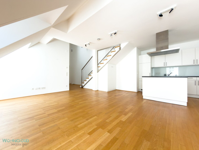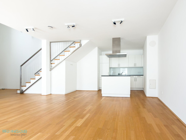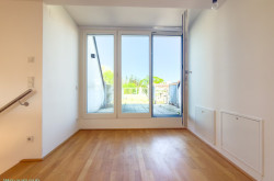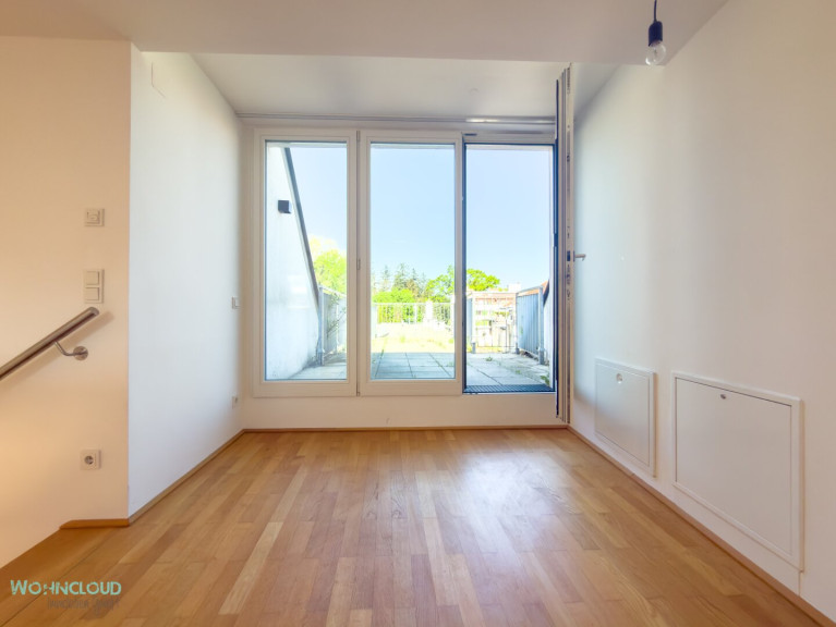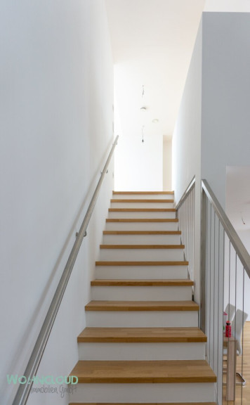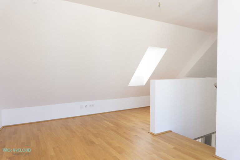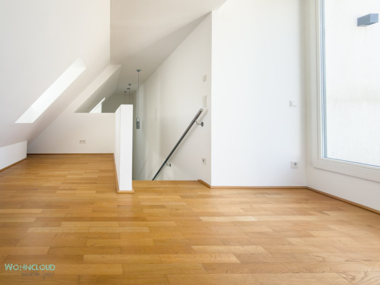 Über eine stilvolle Stiege erreichen Sie das Galeriegeschoss. Ideal als Homeoffice, Leseecke oder Gästebereich - flexibel nutzbar, ganz wie Ihr Leben es gerade braucht. Von hier aus geht es auf die TRAUMTERRASSE. Mit 21qm großzügig bemessen, südwestlich ausgerichtet, Sonne garantiert und Abendstimmung inklusive.