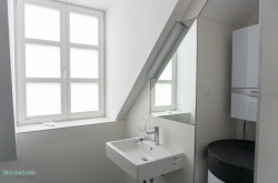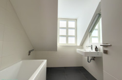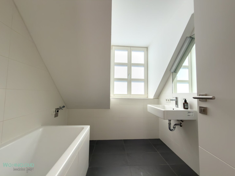 - Tageslichtbadezimmer mit Badewanne und Waschbecken