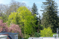 Willkommen in Ihrer neuen Terrassenwohnung - ab sofort bereit für den Einzug! Hier atmet man auf. Gute Luft und viel Grün.