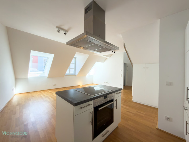 UND dann öffnet sich das Herzstück der Wohnung: Der großzügige Wohnküchenbereich. Offen gestaltet, lichtdurchflutet, modern - Platz für einen großen Esstisch und ein gemütliches Sofa. Die Küche ist top ausgestattet mit Kochinsel und allen Geräten, hier macht das Kochen Spaß.