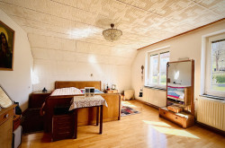 Während das Erd- und Obergeschoss mit sechs hellen Räumen überzeugen, versprühen die beiden Mansardenzimmer im Dachgeschoss gemütlichen Charme.