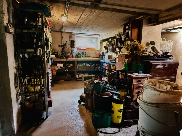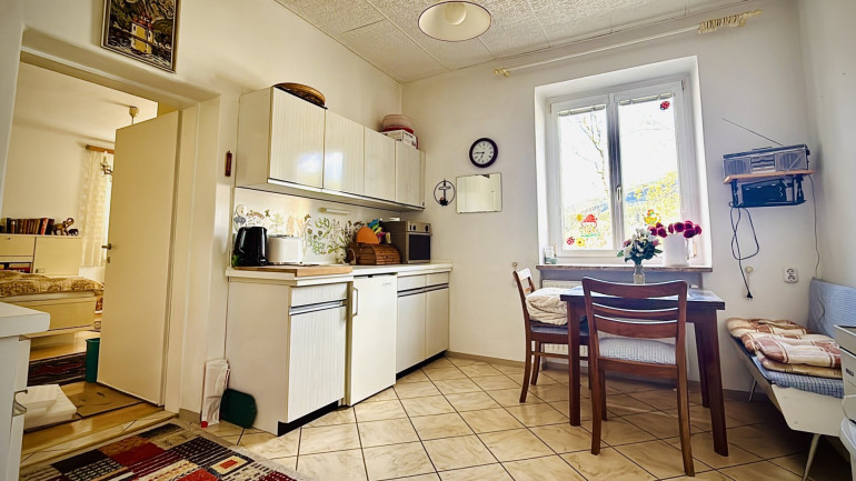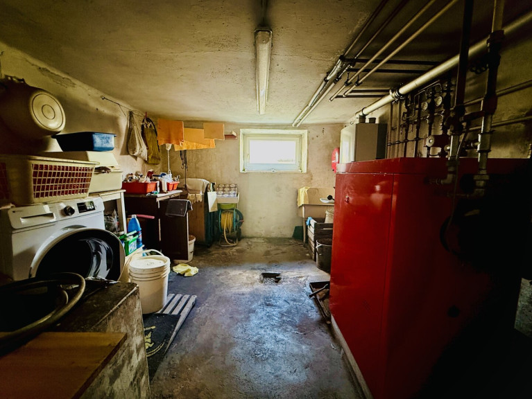 Praktische Details wie die große Garage (Baujahr 1966), ein tageslichthelles Badezimmer mit Wanne sowie ein großer, trockener Keller runden das Angebot ab.