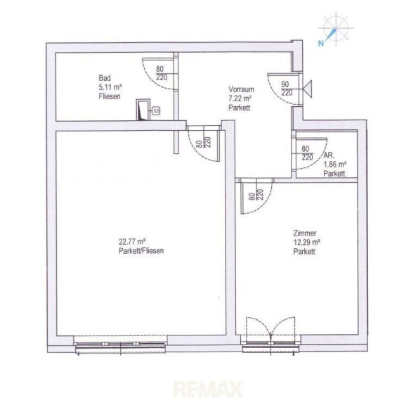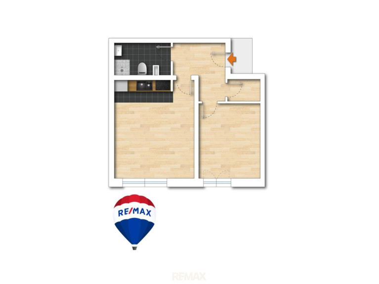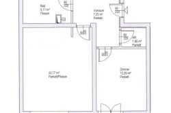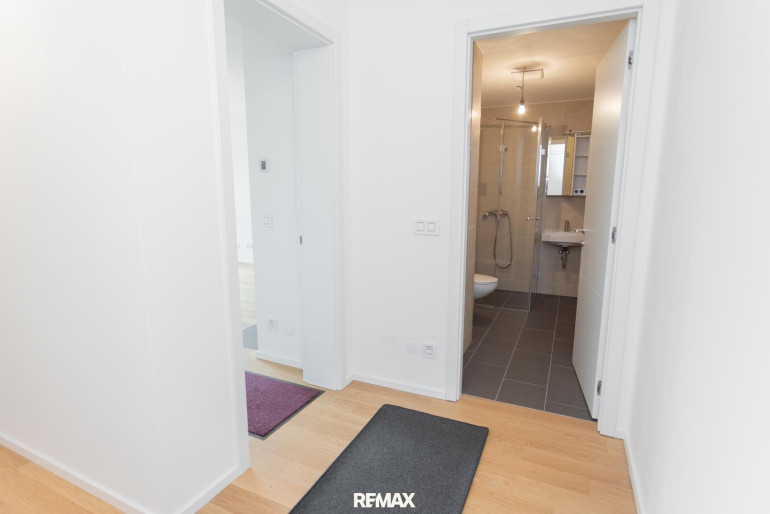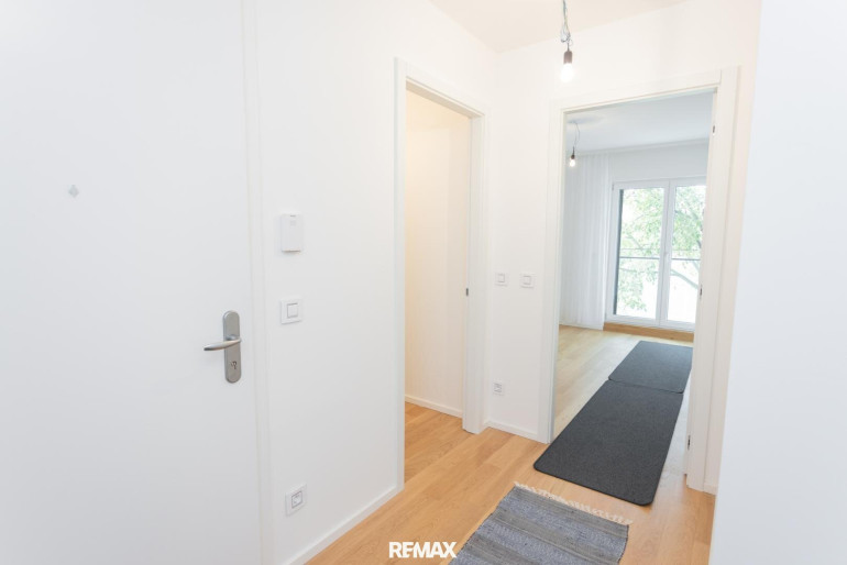 Über den zentralen Vorraum gelangen Sie in die ca. 23 m² große Wohnküche, das ca. 12 m² große Schlafzimmer, das Bad inkl. WC und den Abstellraum.