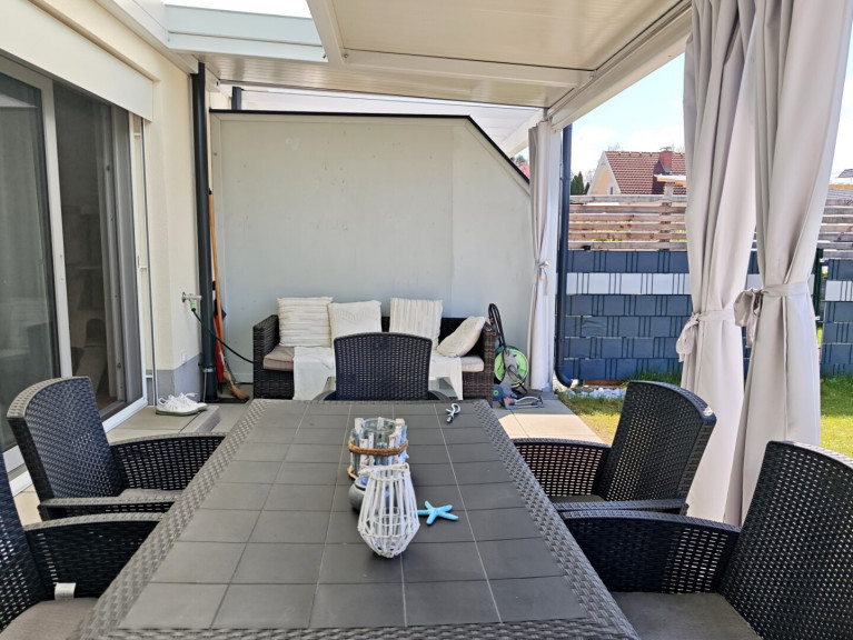 Die wunderschöne Ruhe- und Sonnenlage wird auch Sie begeistern und auf der gemütlichen Südterrrasse können Sie schöne Stunden verbringen.