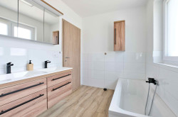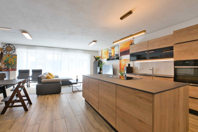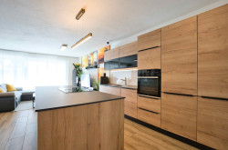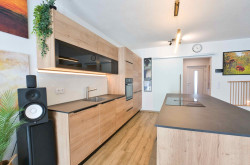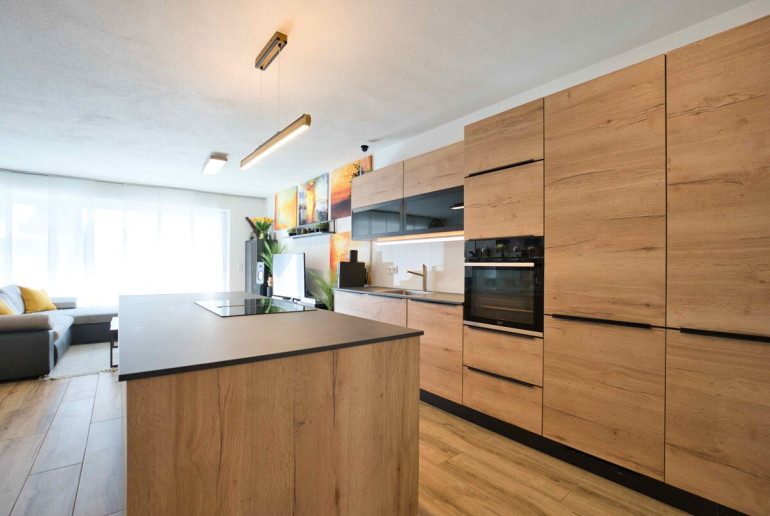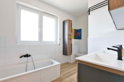 Einbauküche, Dusche, Bad mit Fenster, Badewanne