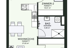 Die Wohnungen bieten hochwertige Ausstattungsdetails wie Parkett- oder Keramikböden, maßgefertigte Einbauküchen, Fußbodenheizung über Fernwärme, eigene Kellerabteile sowie private Außenflächen in Form von Balkonen oder Gärten. Sämtliche Einheiten sind barrierefrei über Aufzüge oder überdachte Erschließungswege zugänglich.