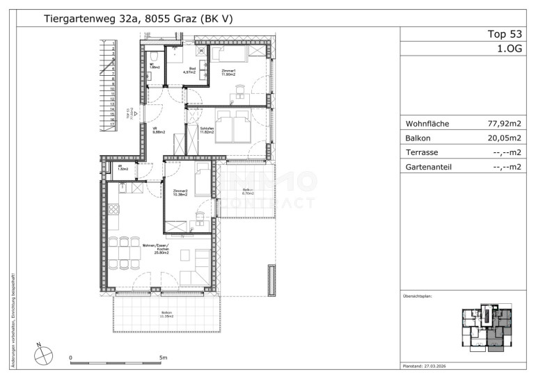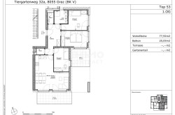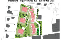 Diese ca. 77,92m² große, geförderte Wohnung befindet sich im 1. Obergeschoß des Hauses Tiergartenweg 32a in einem modernen, neu errichteten Wohnhaus.