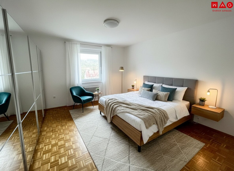 Die Wohnung wird leer, ohne Möbel und ohne Dekorationsgegenstände vermietet. Die Bilder mit den Möbeln und Dekorationsgegenständen dienen lediglich als Einrichtungsbeispiel und sind mit KI generiert.