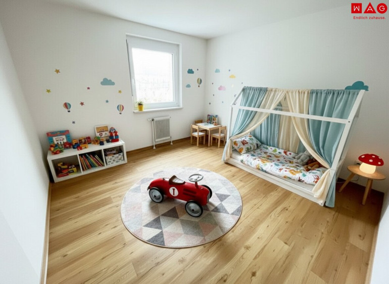 Besonders das geräumige Wohnzimmer mit Loggia lädt zum Verweilen ein und bietet der Familie viel Platz. Zudem verfügt die Wohnung über eine Küche, ein Elternschlafzimmer, ein Kinderzimmer, Bad mit Dusche, getrenntes WC, einem praktischem Abstellraum und ein Vorzimmer. Ein Kellerabteil ist der Wohnung zugeordnet und ein Kfz Abstellplatz kann bei Bedarf optional angemietet werden.