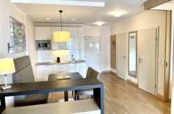 Die großzügige Terrasse, zu der Sie vom Koch-/Wohn-/Essbereich oder vom Schlafbereich aus gelangen, bietet einen herrlichen Ausblick und lädt zum Verweilen und Gneißen ein. Komplett, hochwertig möbliert ausgestattet, verspricht dieses Appartement modernen Komfort. Eine neue, schöne Küche wird in der 20. KW eingebaut. Zur Ausstattung gehören Safe, Telefon, Flachbildfernseher sowie WLAN.