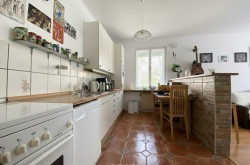 - Eine offene Küche mit viel Tageslicht