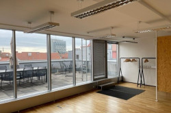 Im 3. Obergeschoss befindet sich eine Dachterrasse und in der Galerie hat man durch die Panoramaglaswand einen Ausblick auf die wunderschönen Grazer Dachlandschaften.