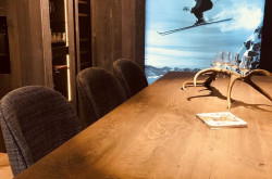 Betritt man das vollmöblierte und luxuriös, ausgestattete Penthouse erwartet Sie im Eingangsbereich eine maßgeschneiderte Garderobe aus Altholz mit Loden-Sitzbank, stylisch-praktischen Gams-Hacken, und mit Metall umrahmten und beleuchteten Ablagefächer. Durch die Glastüre betritt man das Herzstück - die offene Wohnküche mit dem Hochbar-Esstisch und dem angeschlossenen Wohnbereich mit offenem Kamin und Ausgang auf die Dachterrasse.