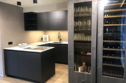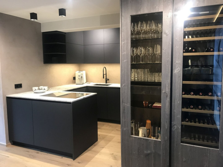 - Geschmackvolle Tischler-Maßküche mit hochwertigsten Markengeräten von Bora und großem Liebherr Weinkühlschrank