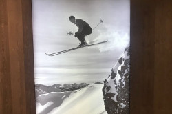 - Inszenierter Skifahrer im historischen Outfit - stylische Lichtinstallation in der Wohnküche