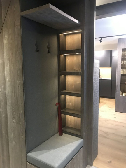 - Altholz-Elemente in Kombination mit Lodenverkleidungen