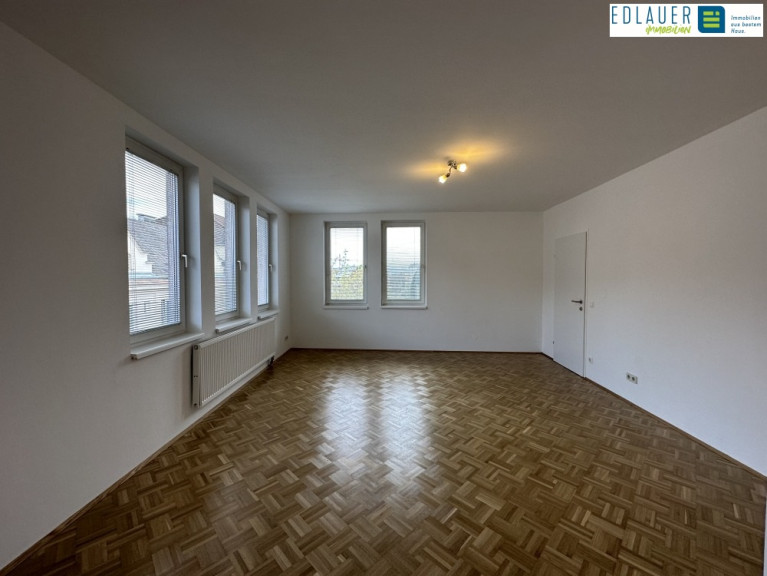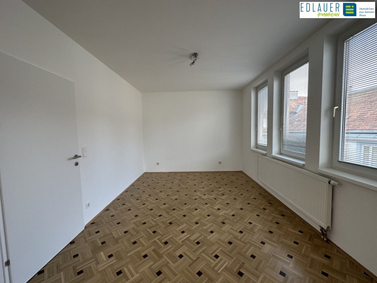 Ganz im Gegenzug zur Küche bietet das Wohnzimmer mit offenem Esszimmer überdurchschnittlich viel Licht. Dank der vielen, nach Osten und Süden ausgerichteten Fenster und dem erstklassigen Parkettboden sind diese beiden Räum überaus hell und freundlich. Vom Esszimmer aus gelangt man über einen kleinen Gang in das Schlafzimmer. Dieses ist ca. 15 m² groß und aufgrund der hofseitigen Lage sehr ruhig.