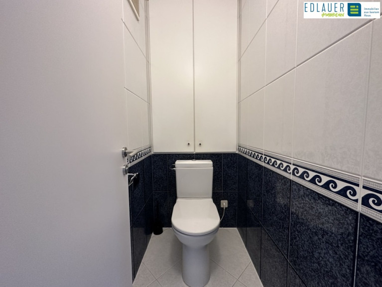 Das Badezimmer und das WC sind über den Gang zu erreichen. Beide sind verfliest und zeitgemäß ausgestattet. Das Badezimmer verfügt über eine Badewanne. Im WC ist in der Rückwand ein Einbauschrank montiert, in welchem auch der Elektroboiler versteckt ist. Beide Räume verfügen über eine Lüftungsventilation.
