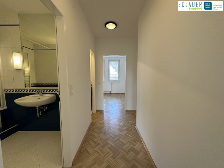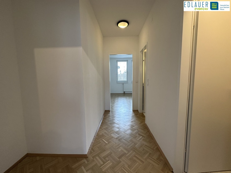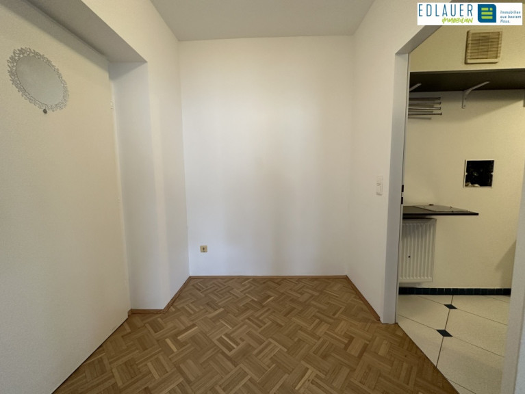 Das Vorzimmer ist bei dieser Wohnung nicht zentral angeordnet, sondern stellt lediglich die Verbindung zwischen Küche und dem Rest der Wohnung dar. Die mit einer Tischlerküche möblierte Küche bietet Ihnen alles, was Sie für den täglichen Gebrauch benötigen sowie eine große Arbeitsfläche.