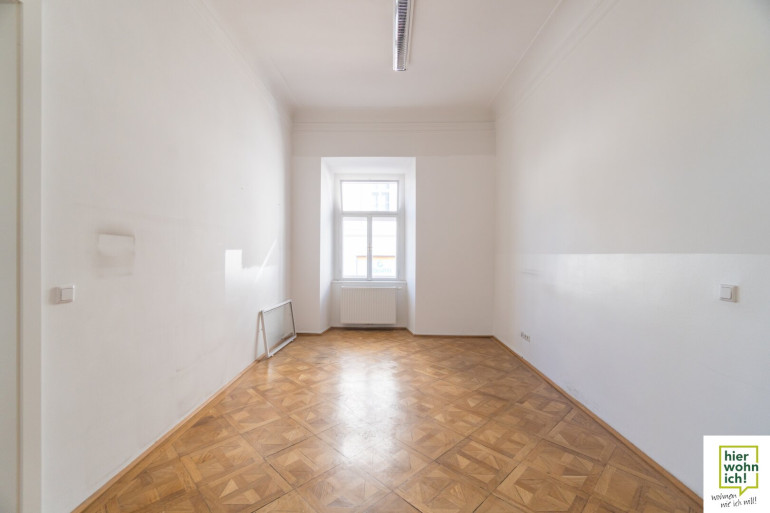 Das nette Büro mit Blick auf das wunderschöne Rathaus selbst verzaubert einen mit seinem bestechenden Altbaucharme und beeindruckt mit den lichten Raumhöhen. Die Vielzahl an großen Fenstern verspricht eine helle und lichtdurchflutete Atmosphäre.