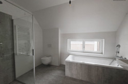 Fliesen, Parkett, Fußbodenheizung, Bad mit Fenster, Badewanne, Dusche, Parkplatz