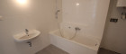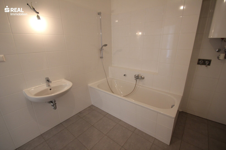- Badezimmer mit Badewanne und Waschmaschinenanschluss
