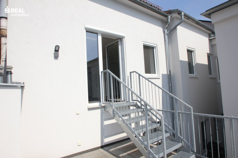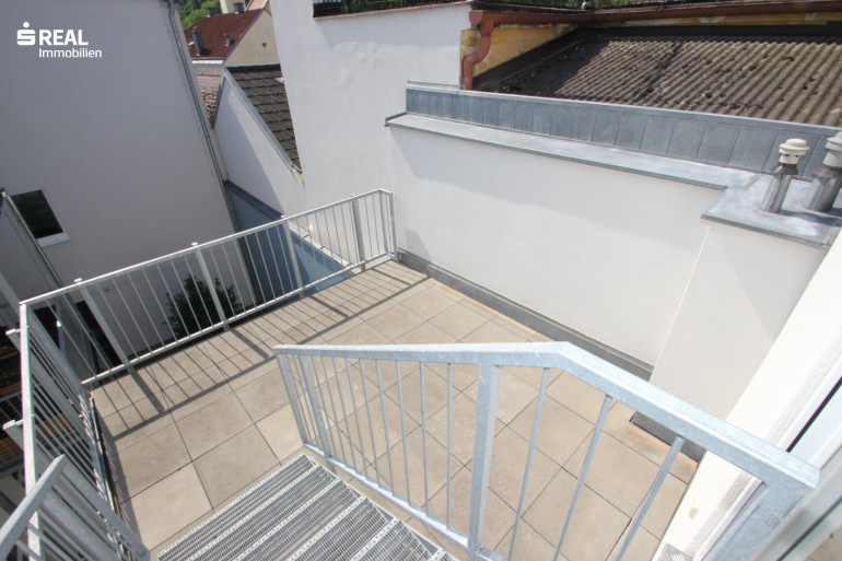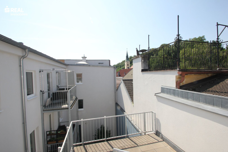 Die neu sanierte Eigentumswohnung mit großer Terrasse liegt im 2. Liftstock eines generalsanierten Mehrparteienhauses, welches sich inmitten des Stadtzentrums direkt am Hauptplatz von Amstetten befindet.