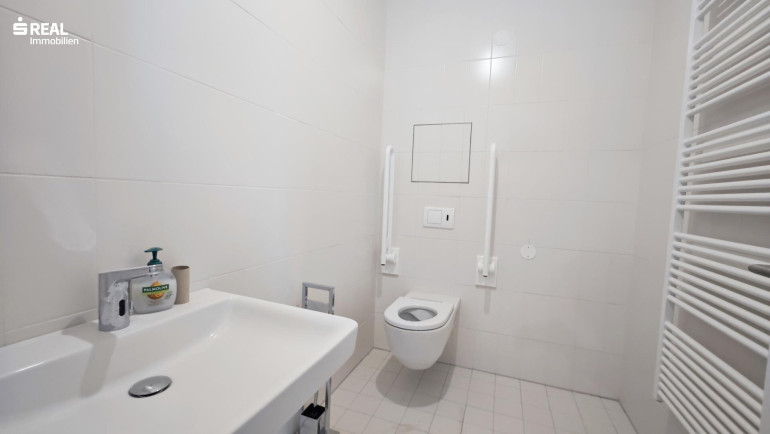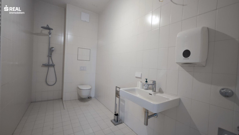 Die Übergabe des Büros erfolgt im Edelrohbau. Einzig das Badezimmer und WC werden verfliest und mit Sanitärausstattung ausgestattet sein.