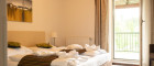 Der Hauptbau gliedert sich in ein Erdgeschoss mit Rezeption, Café, Indoorpool und Behandlungsräumen sowie drei Obergeschosse mit Gästezimmern.