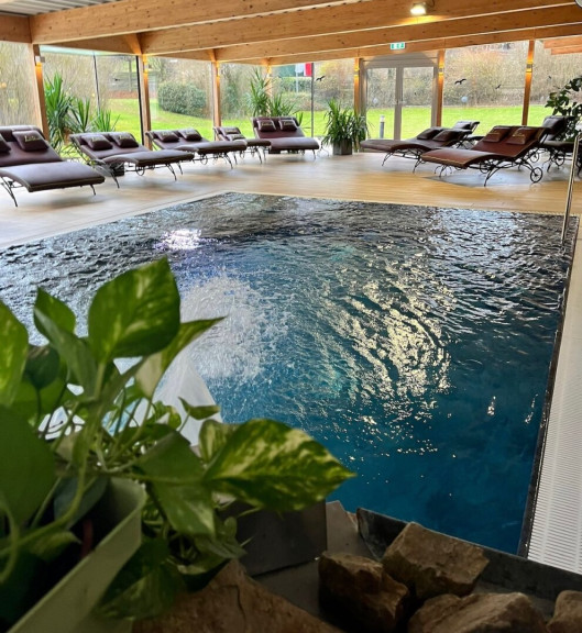 Der Wellnessbereich mit ca. 225 m² bietet einen Indoorpool, eine Saunalandschaft sowie großzügige Relaxzonen und rundet das Angebot für Erholungs- und Genusssuchende ab.