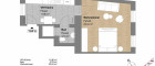 Von der Küche aus führt ein Durchgang in das geräumige Wohn-Schlafzimmer, das ausreichend natürliches Licht bietet und eine angenehme Atmosphäre schafft. Das Zimmer ist das Herzstück dieser charmanten Wohnung. Es bietet genügend Platz für gemütliche Abende mit Freunden und ausreichend Platz für ein Bett und einen geräumigen Kleiderschrank. Große Fenster sorgen für Helligkeit und schaffen eine freundliche Atmosphäre, in der Sie sich sofort zu Hause fühlen werden.