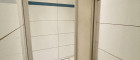 Das Badezimmer ist ein moderner Rückzugsort und verfügt über eine geräumige Dusche sowie ein zeitgemäßes WC. Es bietet Ihnen einen Ort der Erfrischung und Entspannung, um den Tag in Komfort zu beginnen oder abzuschließen.