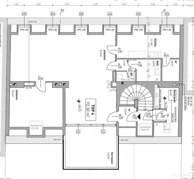 Es handelt sich hierbei um eine perfekt aufgeteilte, sonnige Dachgeschoßwohnung mit 2 Zimmer inkl. Küche und 92,30 m² Wohnfläche + 16 m² südostseitige Terrasse im Dachgeschoß.