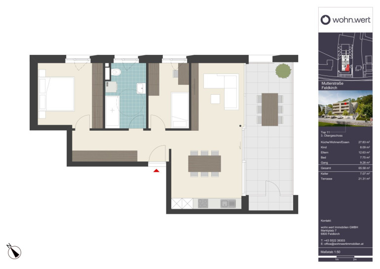 Im Zentrum und doch in der Natur - das schließt sich nicht aus. Wir lassen die Kirche im Dorf, oder besser gesagt Feldkirch in der Stadt: Denn in der Mutterstraße wohnst Du in unmittelbarer Stadtnähe, aber mit den Vorteilen der Natur. "Best of both worlds" sozusagen. Autobahn- und Zuganbindung inklusive. Für Pendler ist Liechtenstein und die Schweiz in wenigen Fahrminuten erreichbar. Für Wanderungen und Sportaktivitäten müssen Sie nur einen Schritt vor die die Haustüre setzen. Spass im Wildpark für die Kleinen ist auch nur ums Eck.Beschreibung der Immobilie