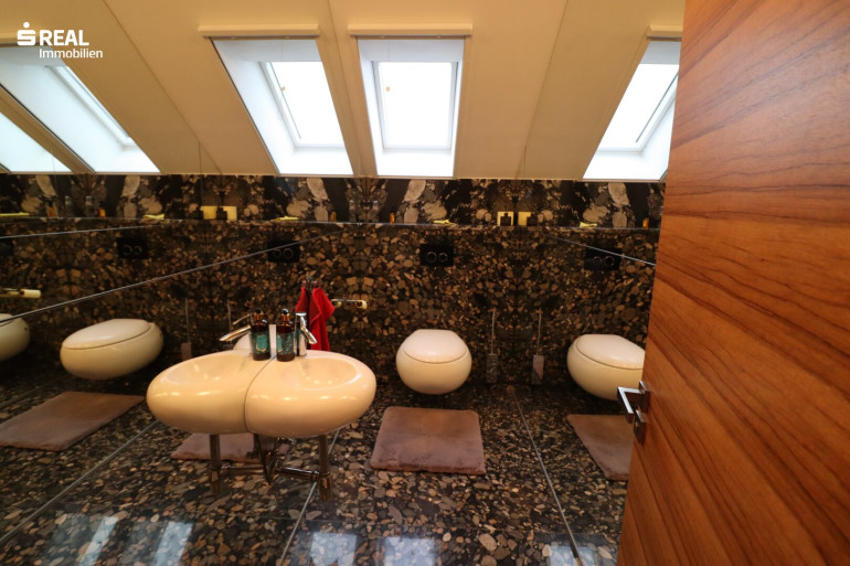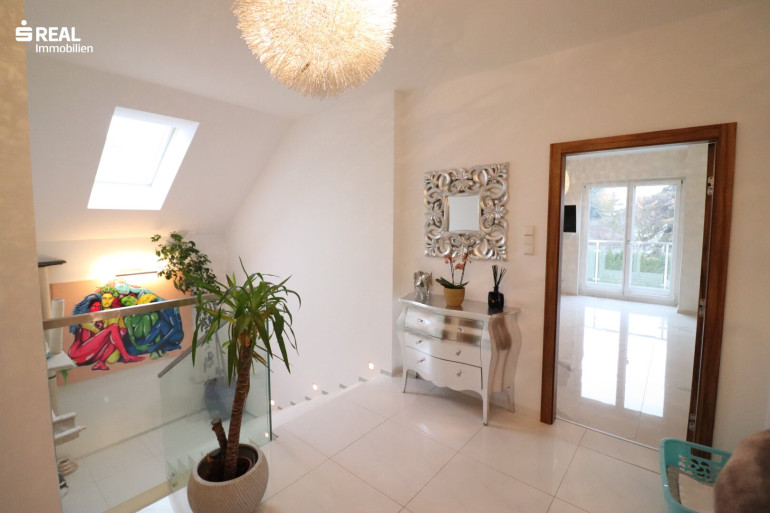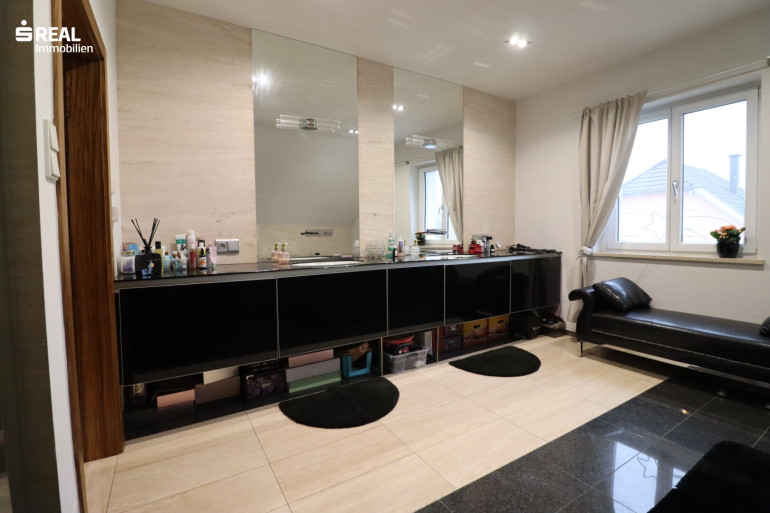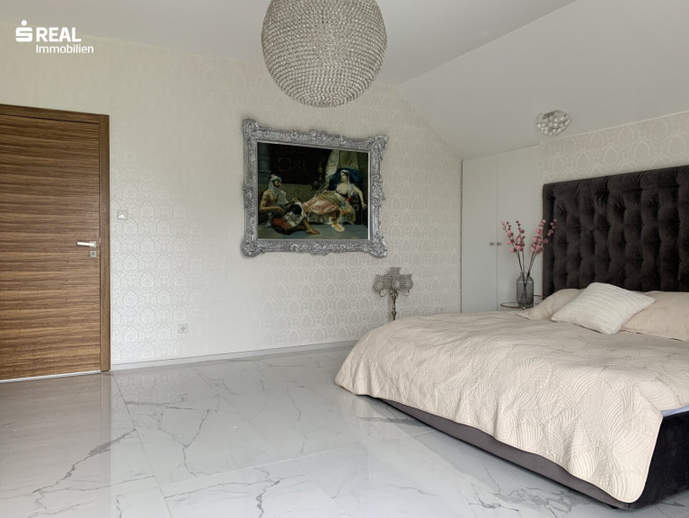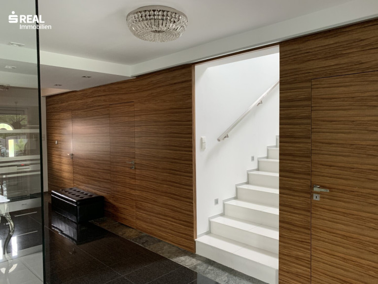 Das Einfamilienhaus zeichnet sich besonders durch eine durchdachte Raumaufteilung, außergewöhnliche Elemente in Holzoptik, Marmor und Glas aus, die eine einzigartige und ansprechende Atmosphäre schaffen.