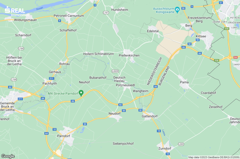 Neusiedl am See ist in ca. 18 Minuten gut erreichbar, die Bezirkshauptstadt Bruck an der Leitha liegt nur etwa 15 Minuten entfernt, die Bundeshauptstadt Wien ist in ca. 50 Minuten mit dem PKW erreichbar.