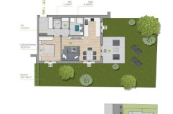 4 Eigengärten, 4 Balkone und 2 DG-Terrassen