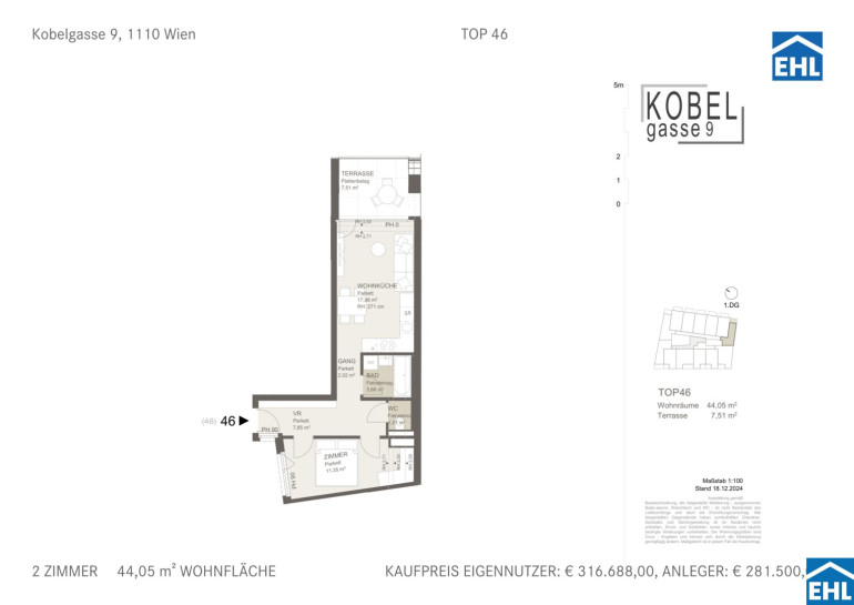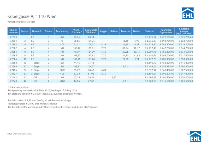 Bei diesem Angebot handelt es sich um eine Vorsorgewohnung, die zu Vermietungszwecken erworben wird. Der angegebene Kaufpreis versteht sich daher zzgl. 20% USt. Diese Daten sind vorbehaltlich möglicher Änderungen.