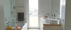 - Badezimmer mit Wanne, Dusche, WC und Waschmaschinenanschluss